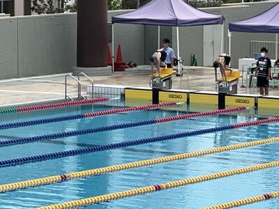 7月24日(日)に、学校総合体育大会県大会水泳3日目最終日が、川口市青木町公園総合運動場プールで行われました。男子100m背泳ぎ、男子200m個人メドレー、女子100m平泳ぎは、惜しくも決勝には進むことはできませんでしたが、女子400m自由形では、決勝に進み、見事3位となり、800mに続き、関東大会出場を決めました。全国標準記録まであと少しでした。