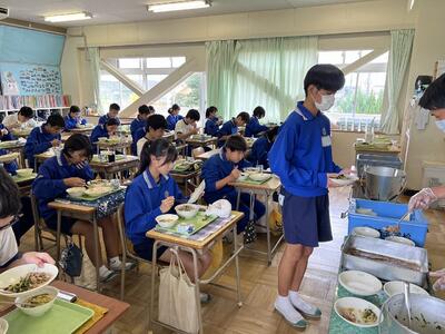 本日より給食が開始されました。食べやすい人気のビビンバでした。久しぶりの給食に笑みもこぼれていました。