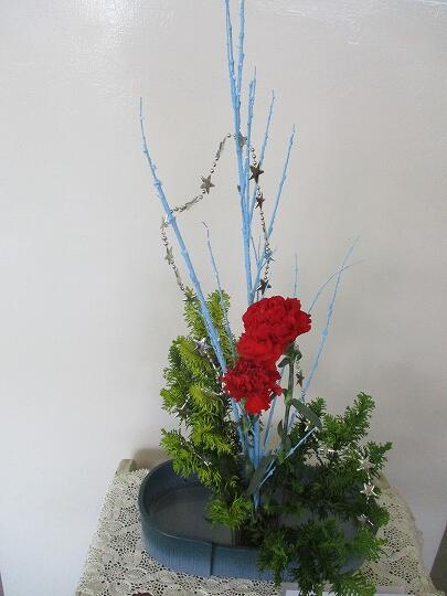 クリスマスバージョンの和洋折衷の活花になっています。