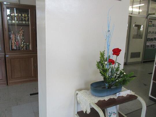 本日から職員玄関にて華道部の生徒の活けた活花でお客様をお迎えしております。