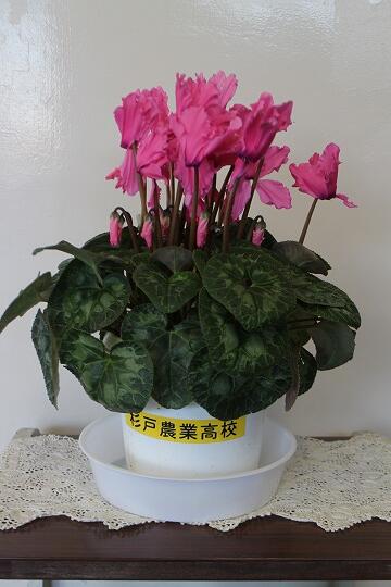 本日、県立杉戸農業高等学校から鉢植えのシクラメンのお花をいただきました。