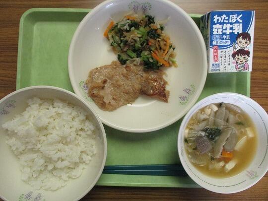 ごはん、牛乳、豚肉のアップルソース焼き、切り干し大根の和え物、ごまみそ汁でした。