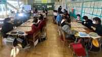 この時期は、全学年で書きぞめの練習を行っています。今回は1年生の授業を見学しました。黙々と集中して取り組んでいました。