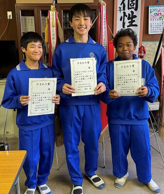 本日、昼の放送で、ひまわり賞(善行賞)の紹介がありました。5組のべ9人の生徒が表彰されました。今回の表彰内容は以下のような素晴らしい行動でした。