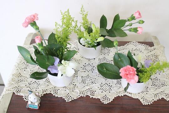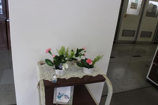 今、華道部の活けたお花でお客様をお出迎えしています。