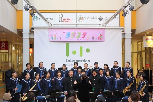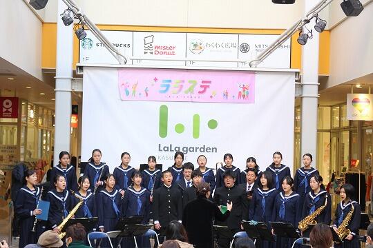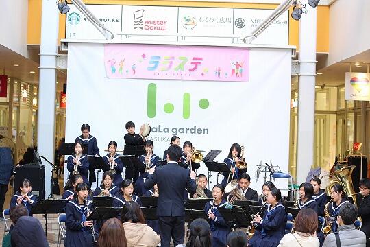 本日、本校のウインドオーケストラ部がララガーデン春日部でララステというステージで演奏をしました。