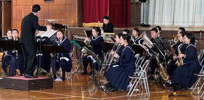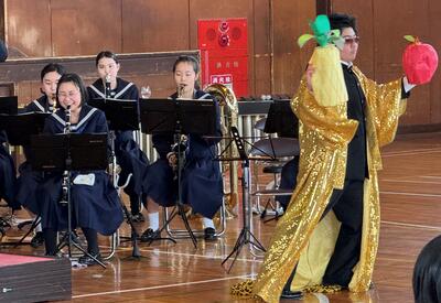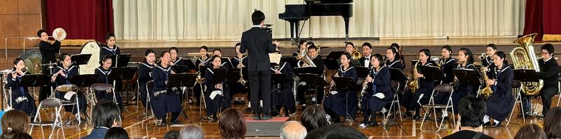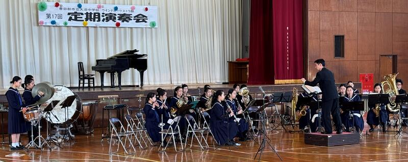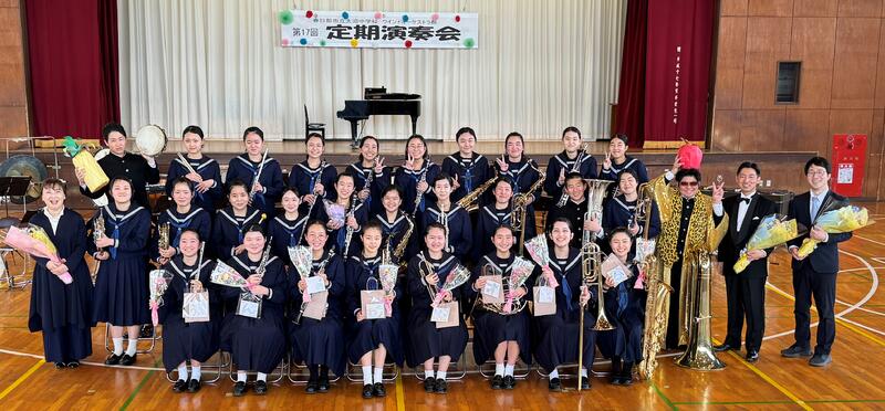 本日、ウインドオーケストラ部による第17回定期演奏会が本校体育館で行われました。客席は100席準備してありましたが、立ち見が出るほどたくさんの観客がきてくれました。ありがとうございました。クラッシックから歌謡曲、ソロやアンサンブル、合唱や寸劇まで幅広く、笑いあり感動ありであっという間の90分間でした。また、引退した3年生も加わり、素晴らしい演奏会でした。