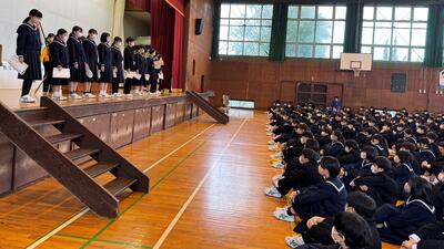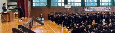 26日(火)に、令和5年度修了式を体育館で行いました。各学年に修了証を授与し、代表生徒の1年間を振り返って・進級にあたっての抱負の発表がありました。校長式辞では、みなさんの成長と来年度沼中を背負っていく自覚が伝わった1年だったことなどを話されました。式後、書きぞめや美術展、コンテストや運動部の大会等、今回もたくさんの表彰がありました。