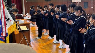 本校からは、伊勢神宮奉納書道展で総裁賞に輝いた2年生1名と全国女子中学校硬式野球選手権大会で3位に輝いた1年生メンバー3人が出席しました。