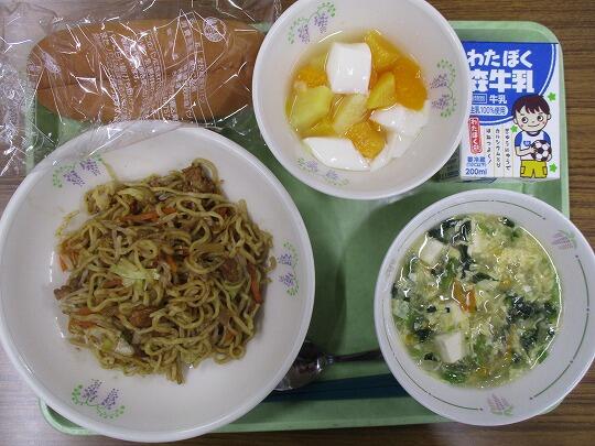 コッペパン、焼きそば、牛乳、レンフォアタン、フルーツ杏仁でした。