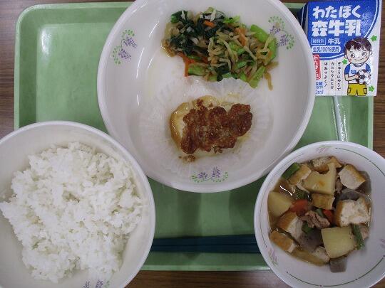 ごはん、牛乳、いかのごまマヨネーズ焼き、切り干し大根の和え物、肉じゃがでした。