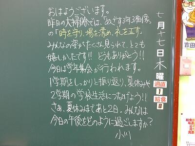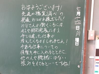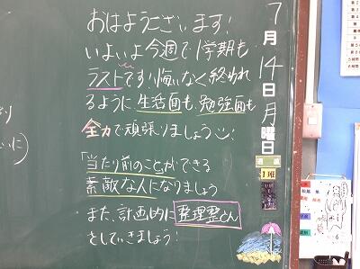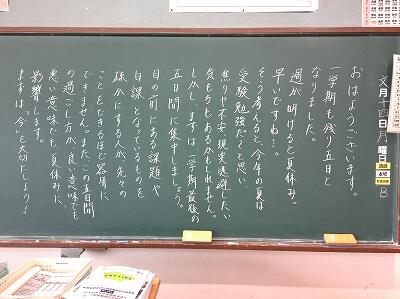もうすぐ夏休みですが、浮かれてはいませんか…?夏休みに向けての志をしっかり立て、熱い心で過ごしてほしい。(校長)