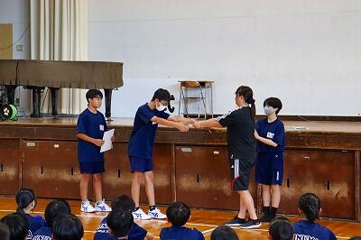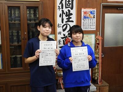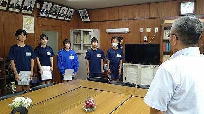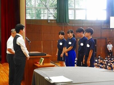 大沼中学校では、学校や地域で良い行いをした生徒に対して、ひまわり賞という名の善行賞を授与しています。1学期は5名の生徒の推薦があり、昨日校長室にて授与式を行いましたので紹介します。