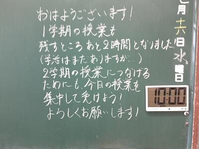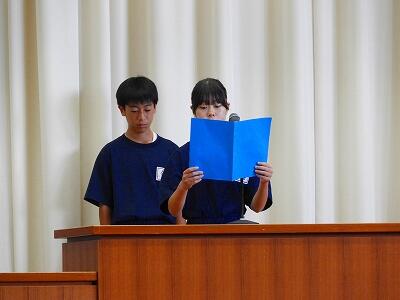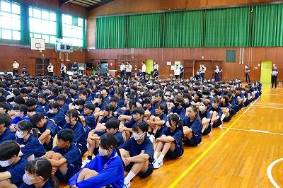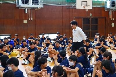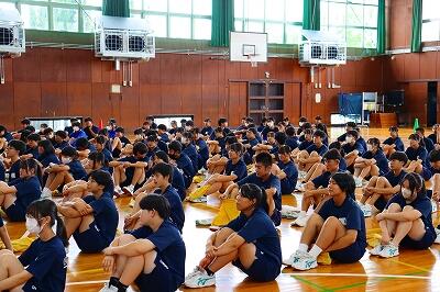 保護者、地域の皆様のご理解とご協力を多分に賜りまして、1学期を無事に終了することができました。本校の生徒たちは屈託のない笑顔で毎日楽しそうに過ごしていました。日々の授業ではどの学年、どの教科も生徒たちは目を輝かせて、真剣に、楽しく学ぶ姿が見られました。また、学校行事や部活動では、教師の指導のもと、生徒たちの自主性を伸ばす活動を展開し、大きな成果を残すことができました。明日から夏季休業日ですが、健康に留意し、学習や部活動に打ち込ませてください。生徒たちには、「学校の授業は休みでも、頭と体と心の成長は休んではくれない、しっかり過ごしなさい。」と指導しています。