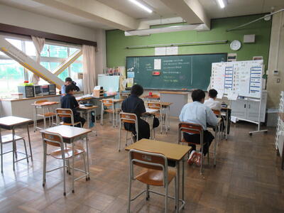 本日午前中に市内の中学校から2名の初任の先生が来校されて、美術と音楽の授業づくりなどについて研修に取り組まれました。各教科の授業を1時間参観された後、本校の各教科担当者との協議がありました。授業に臨んでいた生徒は、いずれもいつも通りに真剣に課題に取り組む姿が見て取れました。