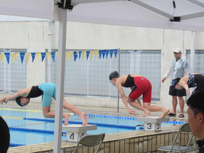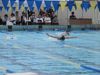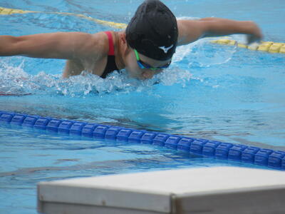 本日、学校総合体育大会予選水泳が市内東中学校を会場に開催されています。本校からは、オープンエントリーで女子1名が2種目に出場し素晴らしい活躍を見せ、県大会出場権を獲得しています!