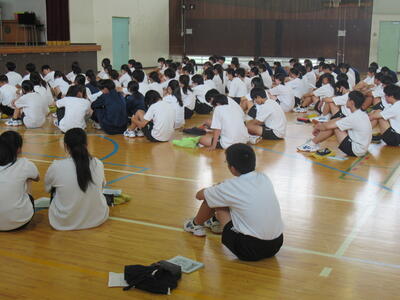 7月初めに実施予定の3学年修学旅行の事前集会がありました。集会では、学年主任の先生からの大切なお話に続いて、しおりの内容に沿って実行委員や各係の代表から説明や連絡がありました。3年生にとって楽しみな修学旅行を有意義で掛け替えのない3日間とするために大切な内容ばかりでした。3年生のみなさん、健康に、そして安全に、さらに楽しい3日間をつくり上げてきてください!