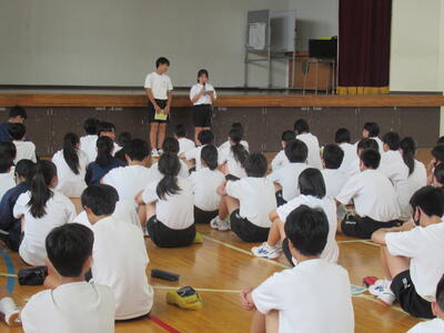 今日は、朝から気温が高く、WBGT(暑さ指数)が31を超えました。保健体育の授業はエアコンを使用できる体育館で実施しました。また、昨年度は7月初旬から始めた「『体操着(半袖シャツ・ハーフパンツ)』での登校」を今日の下校時からスタートしました。熱中症対策を講じての1学期の学校生活が始まりました!