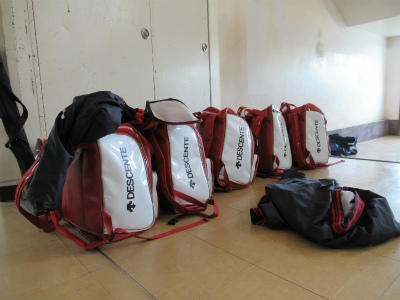 行ってきます。体育館に集まり、健康観察を行い、順調に出発
