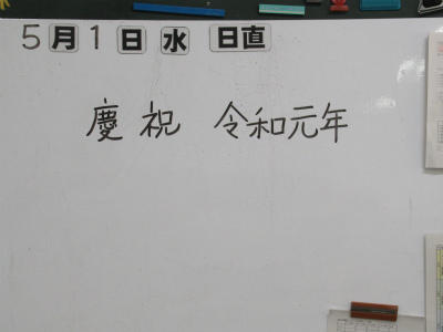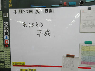 ありがとう平成時代。職員室の正面ホワイトボードです。