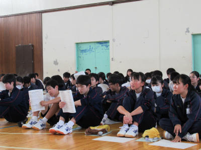 校内での講評でも話しましたが、「自分の身は自分で守る」ことが重要で、その後に小さい子どもやお年寄りを助けることが中学生に求められています。地域では皆さんが一番の戦力であり、期待されています。万が一はあっては困りますが、危機への対応力も身につけていきましょう。