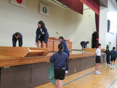 5月31日(金)、明日の体育祭に向けて、午後から体育祭の準備(会場づくり、ライン引き、テント設置など)を行いました。部活動や委員会を中心に手際よく動いてくれたおかげで、昨年よりも時間短縮で終わりました。