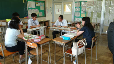 午後は豊中と豊春中の5年目の先生達が各小中学校を入れ替わり、