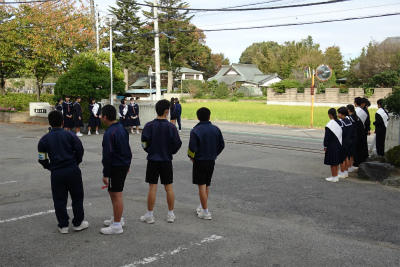 「ありがとうございました」で全校生徒が返答する。