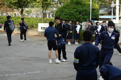 〇3年生は、きょうと明日、期末テストが行われています。校長室掃除の生徒たちは、朝から英語の話をしきりにしていたので、かなり勉強をしているんだろうなぁと思ってみていました。受験生という呼び名が似合ってきているなぁとも感じます。4時間テストを受け、給食後に下校をしていく3年生を見ていると、午後の暖かな日差しの中でぼんやりとしてきます。見送る先生とテストの話をしたり、「あっち向いてほい!」をしたり、ずっとこんな時間が続けばいいのになぁと思うくらい心地よい風景です。毎年、こんな感じだったのでしょうねぇ。