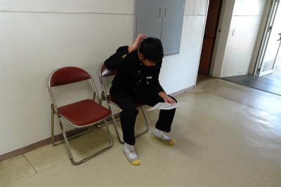 〇3年生は、第3回学力検査に挑んでいます。朝清掃に制服姿で来たので、「あれっ?」と思いましたが、すぐに気づきました。清掃終了後、毎回入試に関わるような問題を出しているのですが、きょうは理科の過去問。気象に関する問題だったのですが、すぐに答えが出ました。さすが受験生だなぁと思いました。テスト風景を見ても、全身から真剣モードになっていることがわかりますね。みんなで雰囲気作りから取り組んでいるのがよくわかります。みんなでこの大きな波に乗って、ゴールまで突き進もう!(校長)