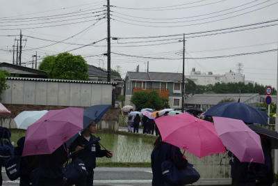 〇横殴りの雨が降る中、いつもより早い時間に集まってきた1年生。ちょっと忘れ物をして、保護者の方を慌てさせてしまった部分もありましたが、全員そろって出発できたことが何よりです。午前中は雨の中のカレー作りとなりますが、屋根があるそうなので何とか予定をこなせそうです。帰ってくるときは、出かけるときよりいい顔であることを期待しています。(校長)