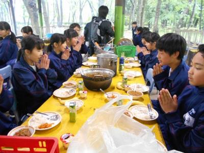 〇1年生は校外学習を明日に控え、6時間目に体育館で事前集会を行っていました。整然とした様子で集会が始まり、係ごとの打ち合わせも順調に進められていたようです。入学して1か月経ちましたが、この校外学習でさらに理解し合えることを期待しています。天気予報では、朝のうち雨ということでしたが、昼頃には雨も上がり、次第に天気も回復してくるようです。スローガンにある「カレー作りで助け合い、自然あふれるえがおの場」となることを祈っています。(校長)