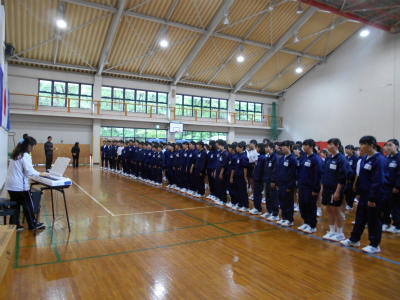 まず校歌合唱。去られた先生も一緒に歌ってくれました。