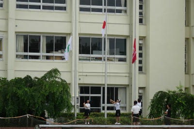 〇GWの中日、生徒たちは久しぶりに会ったような顔をして、うれしそうに友だちと語り合っていました。今朝は、生徒手帳用の写真撮影から始まりました。上半身だけ写るということで、あの不思議な格好で並んでいます。でも、昔々の写真や映画を見ると、上はセーラー服、下はもんぺという姿も一般的だったような。「もんぺ」と聞いても何のことかわからない人も多いかもしれませんね。(校長)