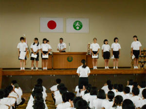 6月18日(木)表彰朝会が行われました。みなさんの活躍を披露する場でもあります。今日は、女子卓球部、野球部、陸上部、女子バレー部、男子ソフトテニス部、男子卓球部 のみなさんが表彰を受けました。おめでとうございます。