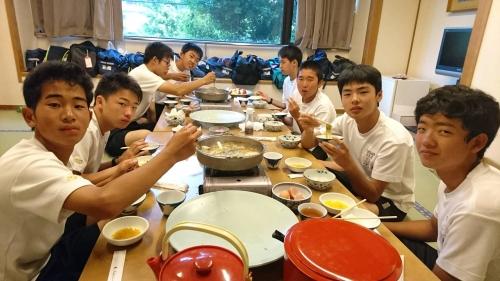 ○ホテルに着いて、最初のプログラムは食事です。今夜はすき焼き。みんなで鍋をつついて会話も弾んでいました。いっぱい食べてね。(校長)