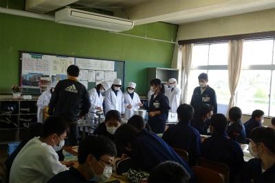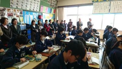 ○まず、授業参観をしていただきましたが、生徒たちはいつもと変わらず、しっかりと授業に臨んでいました。地域の子どもたちを見る評議員さんの顔には、元気に学習に励む生徒たちを見て、うれしそうな笑みが浮かんでいました。