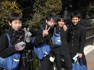 ○この表敬訪問を前に、3月3日(土)は、毎日新聞本社において「全国小・中学校・PTA新聞コンクール表彰式」が行われ、新旧生徒会長が生徒会を代表して式に参加しました。式場には受賞作品も展示されており、「来年は総理大臣賞に選ばれたい!」という意欲が出てきたということです。その気持ちが大事ですね。(校長)