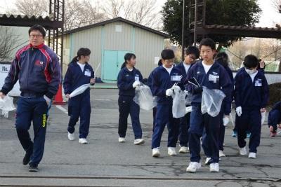 ○まだ日もそれほど高くない時間、生徒たちがぞろぞろと集まってきました。今朝は、1年生のクリーンアップ作戦の日です。まだ寒さが堪える朝ですが、生徒たちは元気いっぱいです。動くことにって、熱を出している感じがよくわかります。この様子を見ながら出張に出かけたのですが、踏切の近くでは、大量に散らばっていたごみを一生懸命拾っている生徒の頑張る姿が見られました。地域の一員として頑張っている生徒を見ていると、なぜか元気が出てきますね。ありがとう。