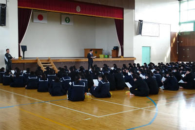 ○2月も今日で終わり、いよいよ明日は埼玉県公立高校の学力検査の日です。6時間目は、その事前指導が行われていました。いつにもまして真剣そうな雰囲気が漂っていました。今夜から明日の朝にかけて雨の予報が出ていますが、早めに起床してゆとりを持って会場へ向かってください。そして、持てる力を存分に発揮してください。(校長)