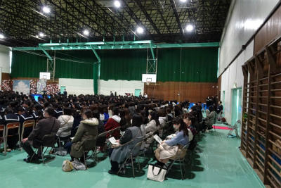 ○埼玉県公立高等学校の受検日のきょう、風雨の影響が心配されましたが、本校の3年生は無事受検会場へ行くことができたようです。天気も予想したより早く回復し、暖かな1日となりました。学校では1,2年生が卒業式の練習に取り組んでいました。主役である3年生のために、脇に徹する1,2年生は真剣な表情でレ演習に取り組んでいました。こうして歴史と伝統が受け継がれてきているんだなぁと、改めて感じました。あと2週間、素晴らしい卒業式にしましょう。(校長)