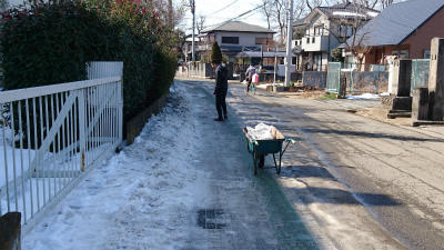 ○学校に到着すると、すでに数人の若手の先生方が、正門前の除雪に汗を流してくれていました。最近の若者は、なかなかやるのぉと、年寄りじみたことを思い浮かべていました。生徒たちが通るであろう通路からはじめ、次々に除雪面が広がっていきました。また、ふだんは自動車通勤の先生方も、安全面と時間を考え、電車で来た先生も見られました。除雪作業をしている職員の姿を見ては、すぐに準備をして仲間に加わっていました。わたしも頑張っていたのですが、「校長先生、代わります!」といって道具をとられてしまいました。年寄りが息を切らしているのがかわいそうに見えたのでしょうかねぇ?