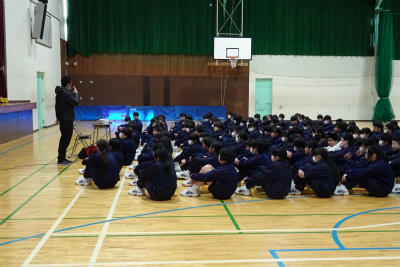 ☆終業式前の様子:マスクをしている人が多いですね。