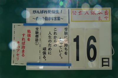 ○校舎内を歩いてみると、全学年ともに書き初めの作品が掲示され、金、銀、銅(赤)の賞が張られていました。先日は2年生の作品を載せましたので、1年生や3年生の様子もご覧ください。金賞を受賞した生徒たちは、1月の市内展に向けてさらに練習を続けます。がんばって納得できるいい作品を仕上げてください。(校長)