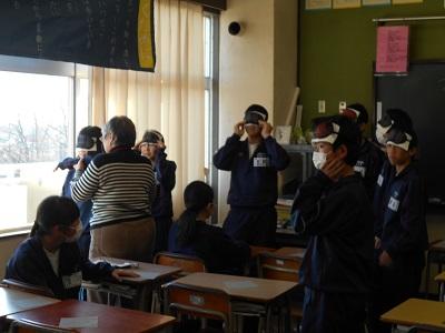 ☆アイマスク体験の様子(周りが騒がしいと集中できないことに気づきました。)