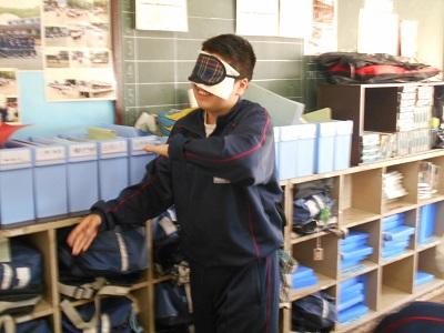 ☆アイマスク体験の様子(ちょっと怖かったです。歩くのは大変です。)