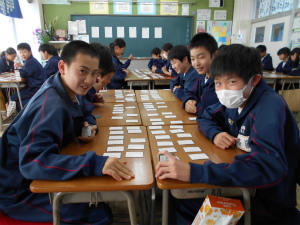 1年生は、国語の時間に百人一首に取り組んでいます。もうすぐ百人一首大会です。まだまだ上の句で札をとることは難しそうですね。