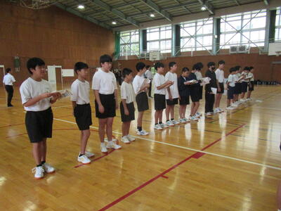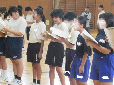 第92回NHK全国学校音楽コンクール関東甲信越ブロックコンクール、市内英語弁論大会、科学教育振興展覧会埼葛地区展、南埼玉支部発明創意くふう展、市内読書感想文コンクール、新人体育大会予選の賞状伝達を全校朝会で行いました。たくさんの豊春中生徒の輝かしい活躍の成果が全校生徒に披露されました。各表彰の詳細は、次号(11月号)までの学校だよりでご確認ください。