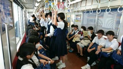 ほぼ豊中生 投稿日時 : 2018/05/25 豊春中 カテゴリ:今日の出来事 ○10時27分、近鉄で奈良に向かいます。車内は、ほぼ豊春中学校の生徒ですが、みんな車内のルールを守って、静かに過ごしています。(校長)