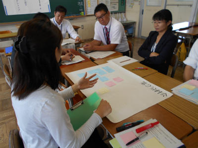 全体会で報告を行い、指導を受けました。みんな真剣です。